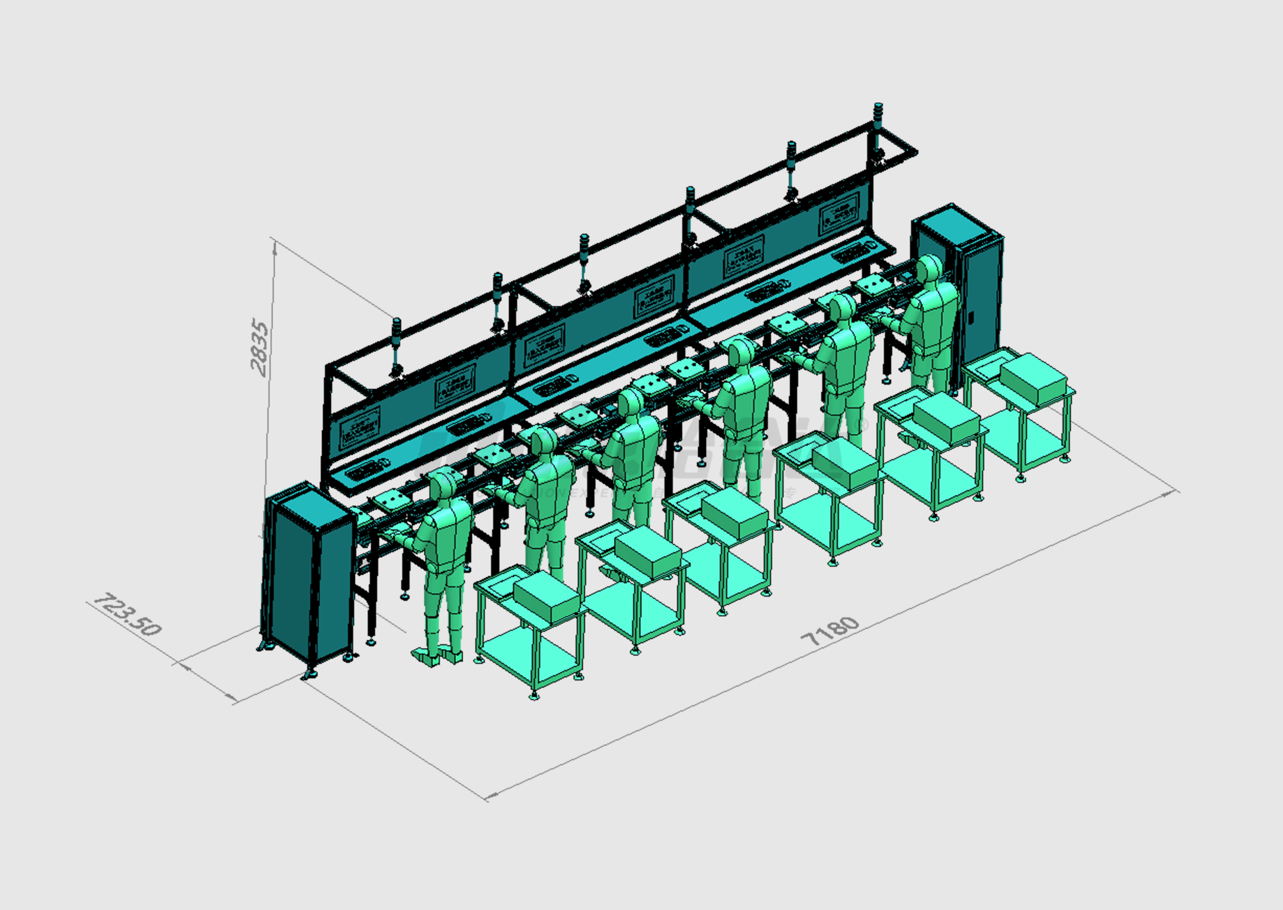 通过同步带随行夹具可以实现在节省空间的情况下分料多个样品,适用于多工位组装&搬送生产场景