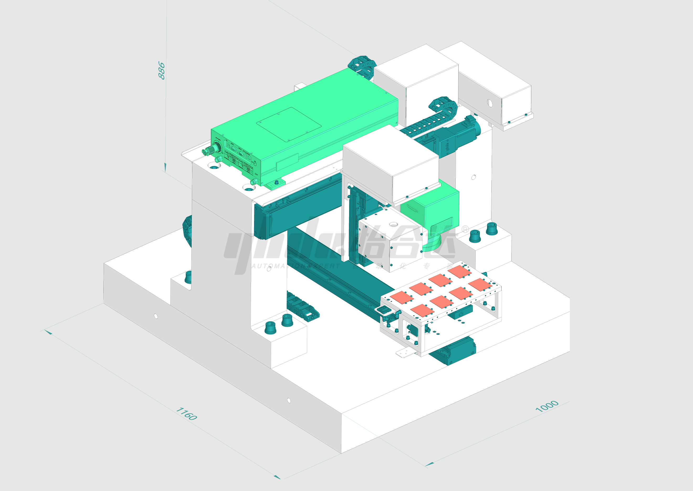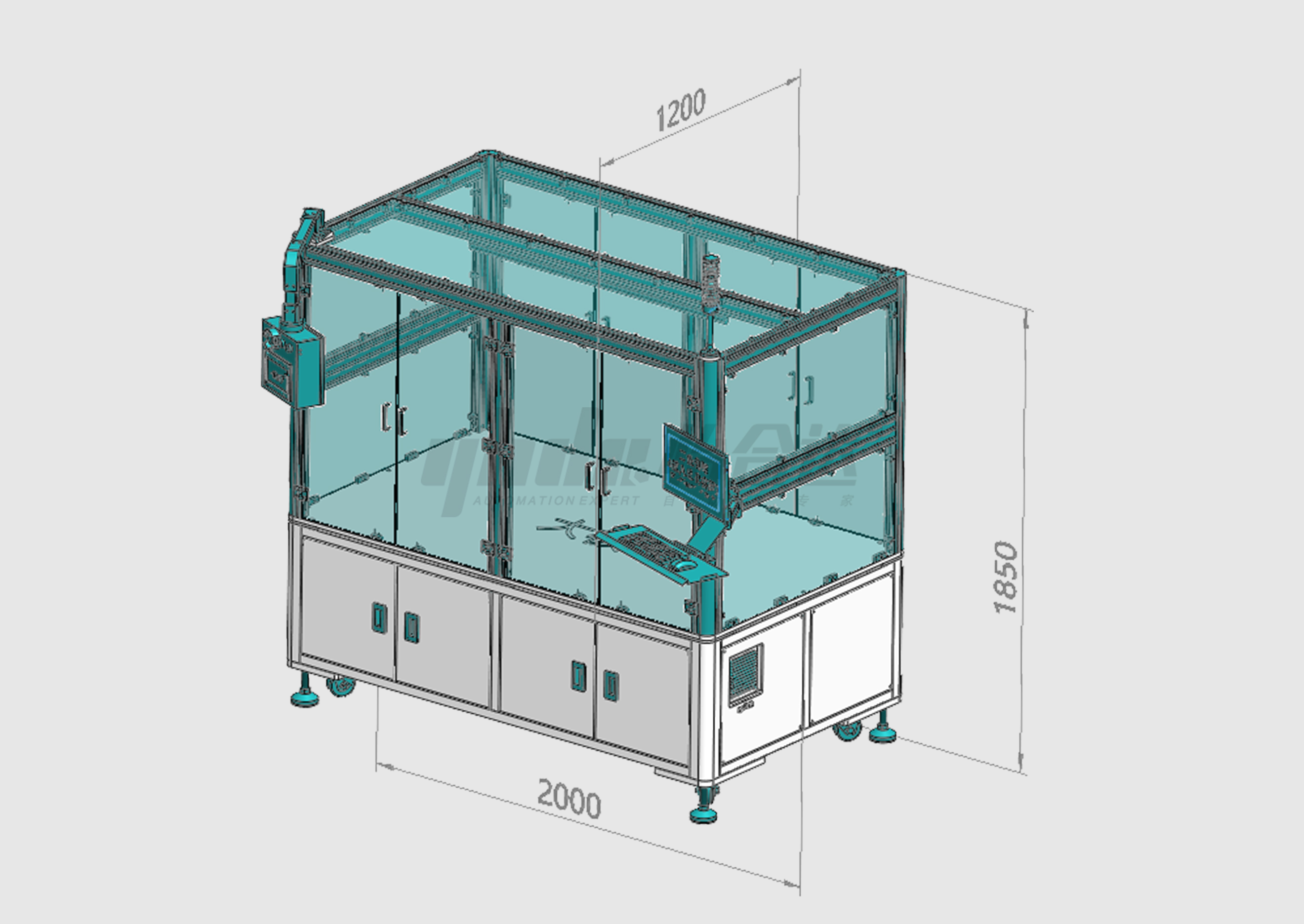 使用怡合达自营件(铝型材,电控件,气控件)搭建生成铝型材上机罩主体结构和机械吊臂控制箱组件、使用方通及钣金焊接件设计下机箱主体结构(机箱&机罩分体式)。适用于各种类型的自动化设备。