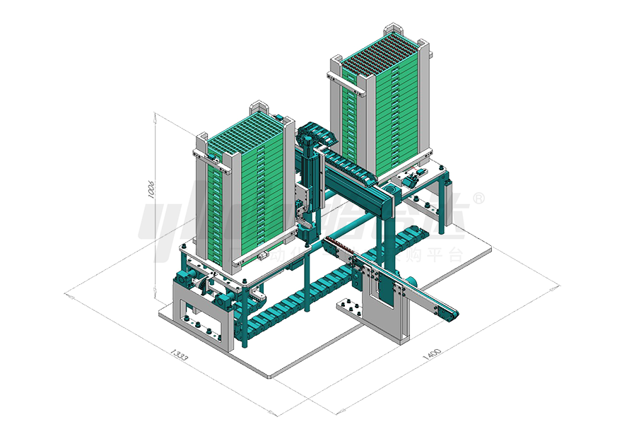 用料盘方式实现自动上下料,单次储料工件3200个,适用于料盘自动上料、料盘自动下料应用场景。