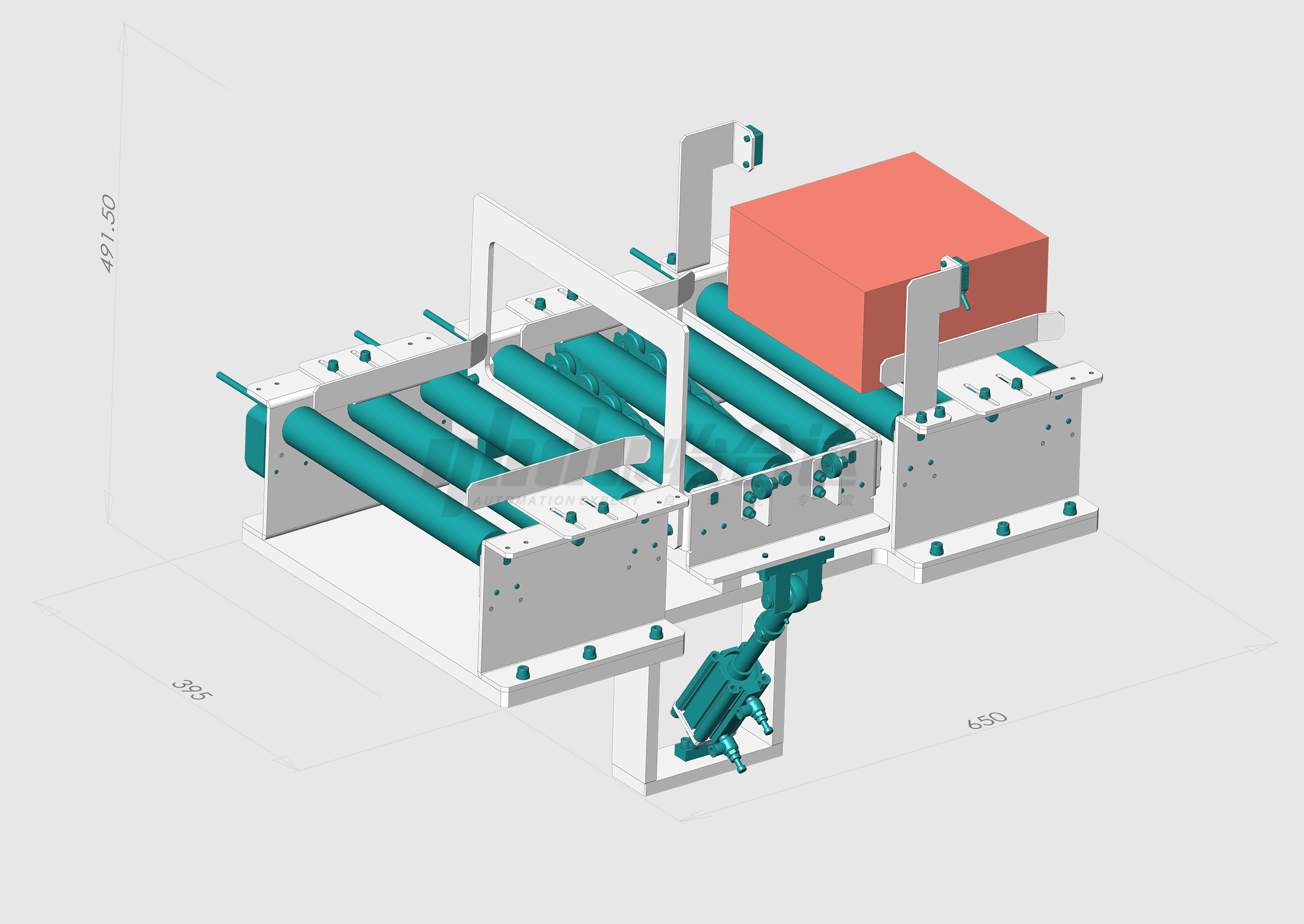 箱式包裹需要按照箱子的高度尺寸进行分类运输时,此机构可以将包裹按照箱子的高度尺寸进行分类,然后通过各自的输送机传送到指定的位置,主要应用在物流行业分类输送线,将高度不同的包裹分类