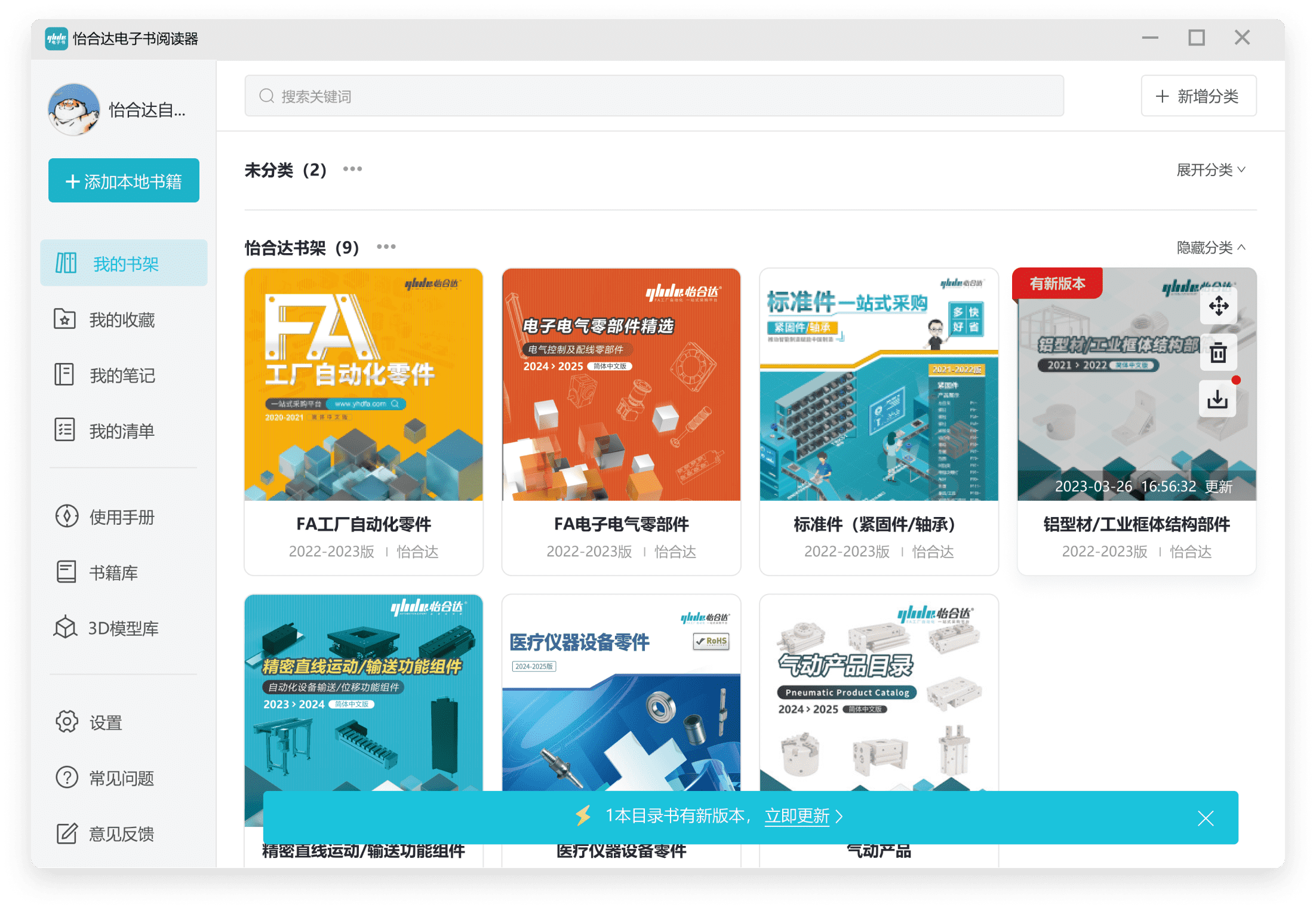 阅读器自带怡合达所有电子目录书,且实时更新