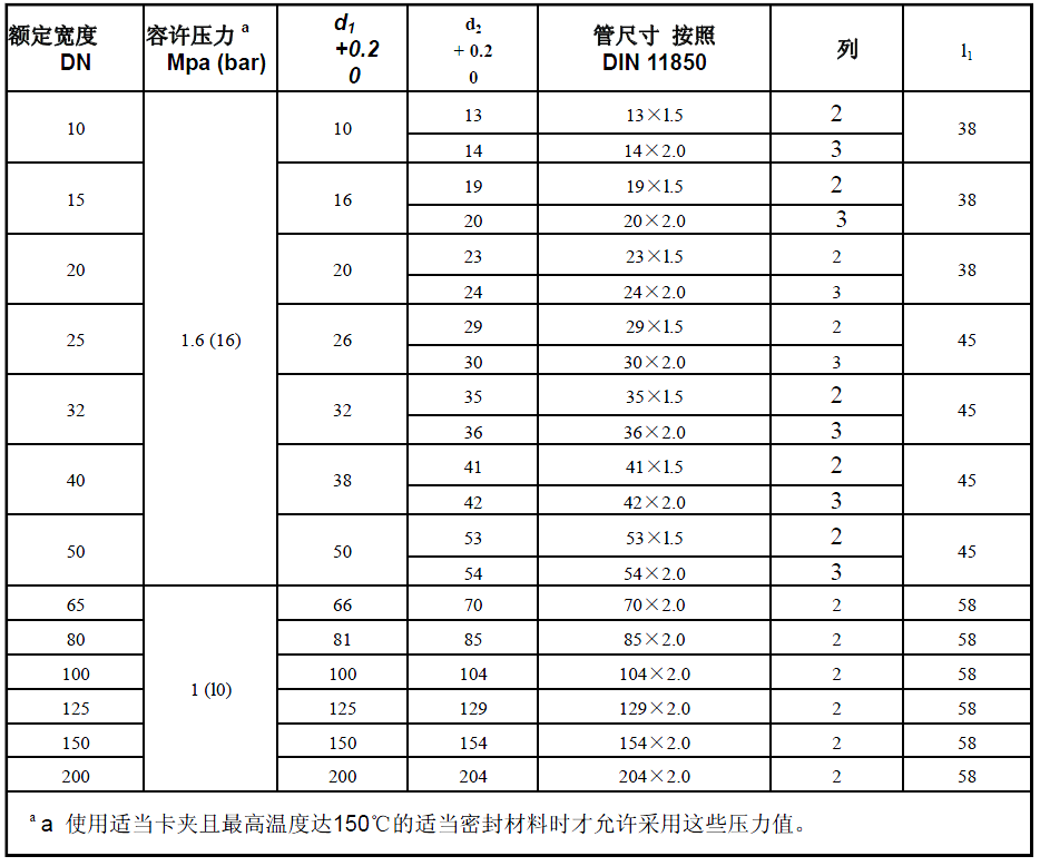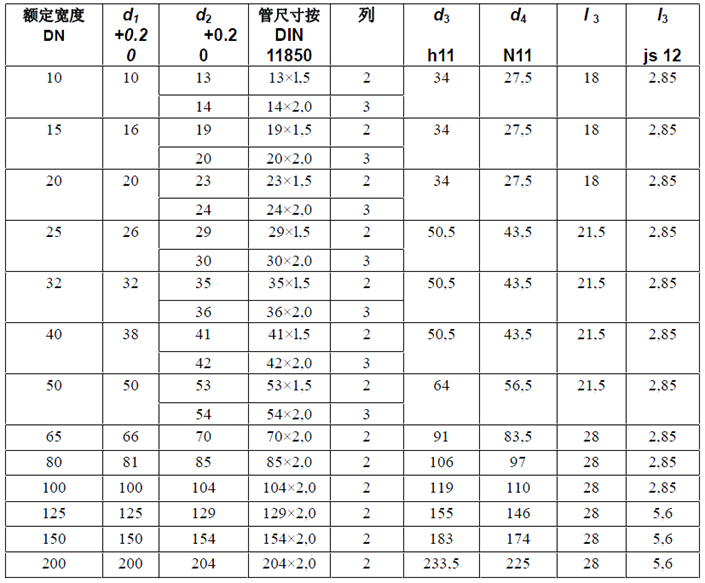 | (3)DIN11850-2009 标准(建议全部使用此标准) | ||||||