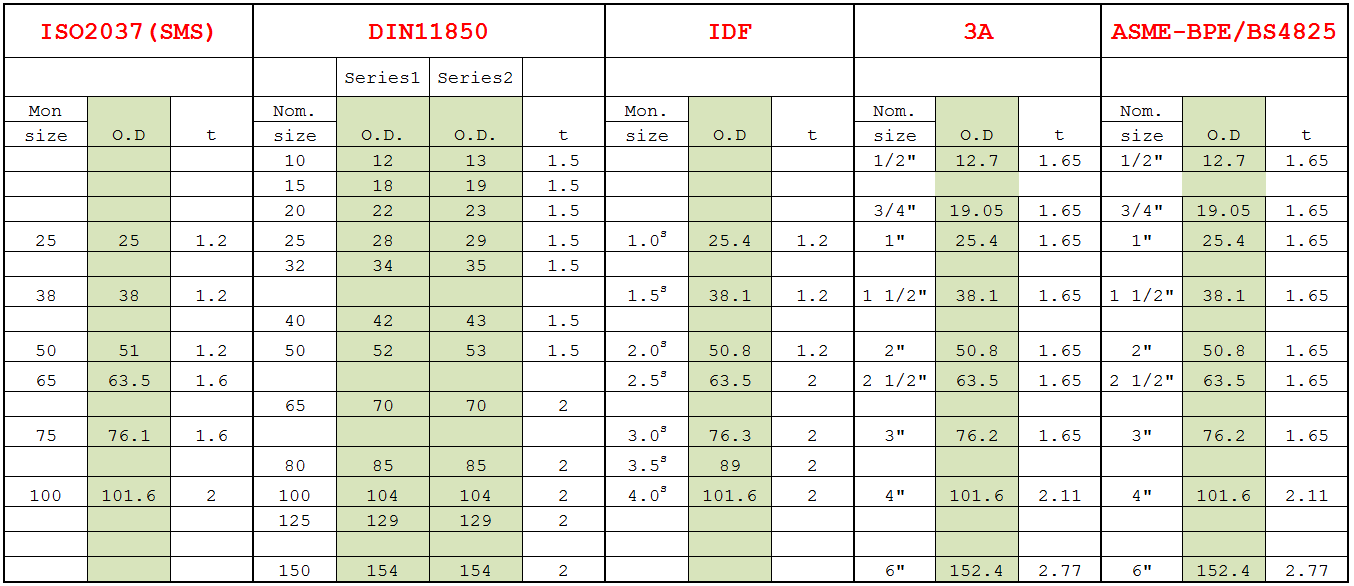 | 一、卫生级管路 卫生级管道,也称食品级清洁管路,要求使用的材料是304L或者316L,表面需要进行表面处理或抛光,表面粗糙度等级达到 Ra1.6,制造标准众多;以ISO、DIN、USA 3A、IDF、JIS应用居多,公司主要用ISO-Clamp 2852、DIN-Clamp 32676这两种。 |