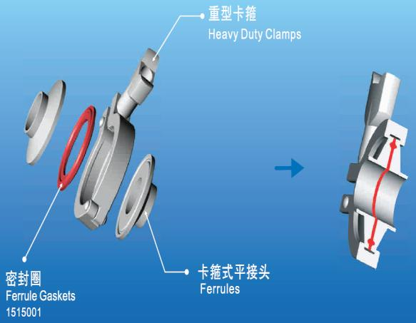 | 1、主管道设计要点 a.锁紧螺丝要兼容外六角螺丝; b.不锈钢管应选用DIN11850中标准的管径(外径); c.密封垫选择A50硬度优力胶; d.内侧倒角C1。 |