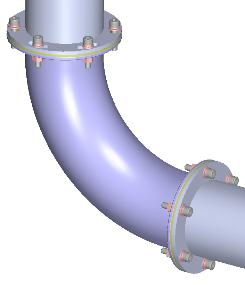 3、主管道90°弯头设计要点 a.一侧法兰必须要可调角度; b.管道外径要和相连管道匹配; c.加A50硬度优力胶密封垫; d.必须选择标准弯头尺寸(弯管半径标准)。 |