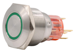 φ22不锈钢标准型按钮开关 特点:不锈钢材质,耐腐蚀、耐磨损,外观高档;多种灯带样式(单点/环形/带电源标识/颜色灯带),视觉醒目,功能指示明确;IP67高防护:防尘防水,适应严苛环境。推荐系列:ZHB35、ZHB36 。