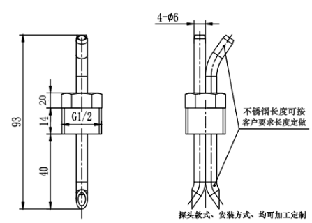 皮托管为定制产品:法兰尺寸 ,螺纹尺寸,探头长度均可以定制。