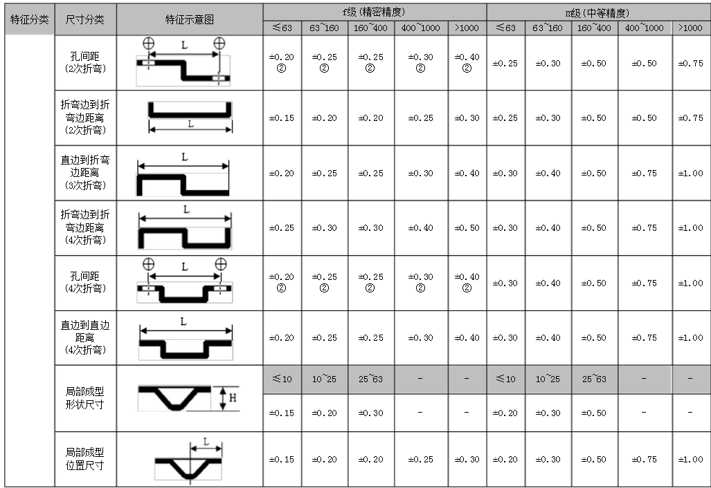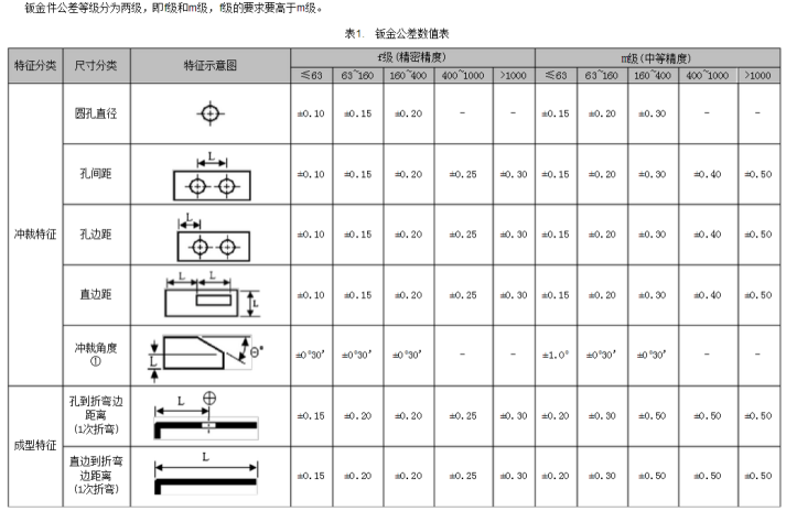 | 28.钣金件公差等级表(未标注尺寸公差选用 m 级(中等精度)) | |||