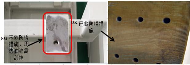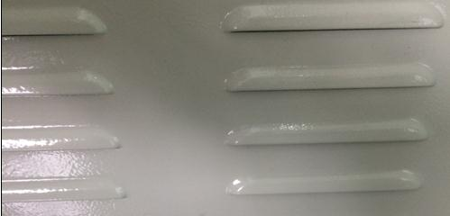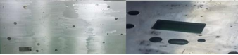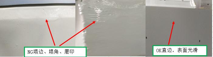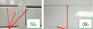 大板表面不能有抛光痕、腐蚀、压印、划痕、振刀纹、纹路规则及一致性,镀层厚度达到行业要求; (上图为NG,下图为OK) |