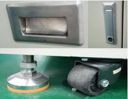 1)机架上需要的铰链、门锁、脚杯、氮气弹簧等标准件按图纸上指定的品牌和型号由加工商自行购买,并安装; 2)机架所有安装配件如螺丝、垫片等,不能含有铜、锌、镍; |