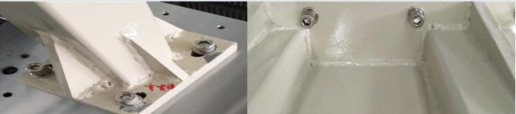 1)烤漆颜色纹路严格按色板烤漆,不能有明显色差,不能掉漆;烤漆用的粉不能是废粉,保证品质; 2)焊接后,焊接位置需要打磨光滑,不得有焊渣残留; 3)喷粉前机架需要进行酸洗除锈处理、磷化处理,不平处刮腻子; 4)烤漆厚度约 0.3mm; |