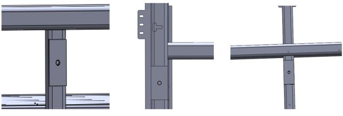 方通框架间方通的搭接处使用如图所示方式,特殊位置按照图纸标注出的方式搭接,搭接处要求满焊; | ||