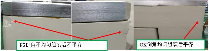 锐角(边)倒钝值的一致性,组装后不能出现两工件间的不平齐; | ||