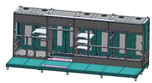 | 22 | 标准件的安装 | 1、机架上需要的铰链、门锁、脚杯、氮气弹簧等标准件按图纸上指定的品牌和型号由我司提供,供应商安装; (另有需求,单独备注说明) 2、机架所有安装配件如螺丝、垫片等,不能含有铜、锌、镍; 3、地脚安装高度,框架底边距地面 150mm。(调平后框架底边方通面距地面约 150mm) |