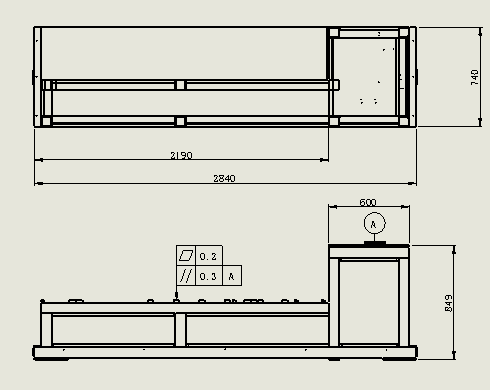 | 15 | 卧式方通架 1 加工 | 1、对机架连接板及激光组件安装板进行精加工,保证二者之间平面度在 0.15mm 以内。(对机架连接板和激光组件固定板) 2、为保证精度,机架连接孔位建议在龙门铣上一次性加工出; 3、螺孔及加工面加工完成后及时涂防锈油(厚度 30~40μm)作防锈处理; 4、底方通架连接孔需要与竖方通架相配。管控 |