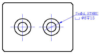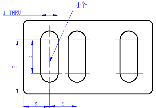槽宽尺寸注释后,表明是通孔还是盲孔。 通孔:通或者贯穿 盲孔:深度符号+数值 多个相同结构数:指引线拉出注释,箭头指向结构中心部位 |