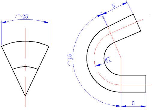 弧长符号“⌒”在尺寸数字左侧。 | |