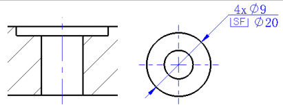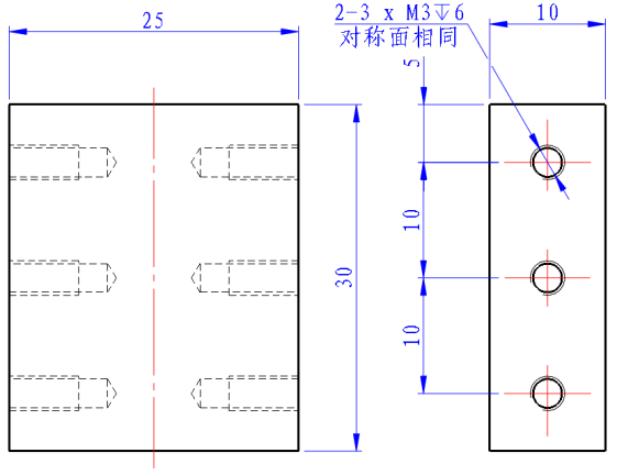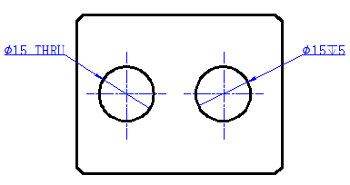 一般通孔的标注,必须标注“通或者贯穿” 一般盲孔的标注:标准孔,须使用孔深符号“↧”,非标准孔须在特征上标注“深度”+数值 |