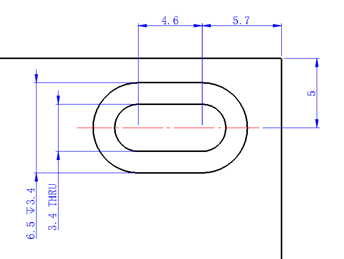槽宽尺寸注释后,表明是通孔还是盲孔。 通孔:通或者贯穿 盲孔:深度符号+数值 |