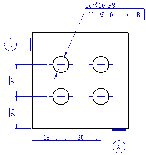 有位置度要求的尺寸对应的定位尺寸需要标理论正确尺寸(TED),数字加“□” | |