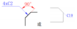 倒角的个数 × C 倒角的边长 (箭头与倒角之间夹角近似90°) |