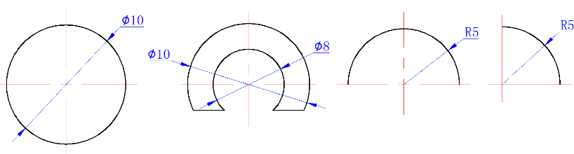 当圆弧≤180°时,标注 R; 当圆弧>180°时,标注ф |