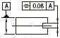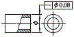 表示圆柱直径的尺寸中如果有公差的记录框时,该圆筒的轴线必须在直径0.08mm 的圆柱内。 | ||