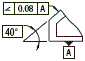 指示线箭头表示的面,必须在相对基准平面A,理论上正确的倾斜40°,并在指示线箭头方向上相隔0.08mm的2个平行面之间。 | |||