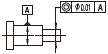 在表示公差带的数值前带有φ符号时,则该公差带是以基准轴为轴线的直径t的圆柱内的区域 | ![]() |