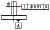 指示线的箭头表示的圆柱的轴线应在垂直于基准平面A的、直径0.01mm的圆柱内。 | |||