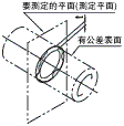 在表示公差带的数值前带有φ符号时,则该公差带则为垂直于基准平面的直径t的圆柱内的区域。 | ![]() |